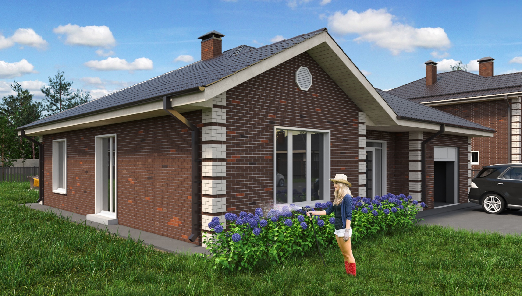 Одноэтажный дом общей площадью 135 кв. м. Идеально для большой семьи — три просторных спальни, два санузла, кухня с гостиной 28 кв.м. Встроенный гараж на одну машину. Все комнаты изолированные с выходом в просторный коридор. Невероятно уютный и светлый дом с большими окнами для комфортной семейной жизни за городом.
