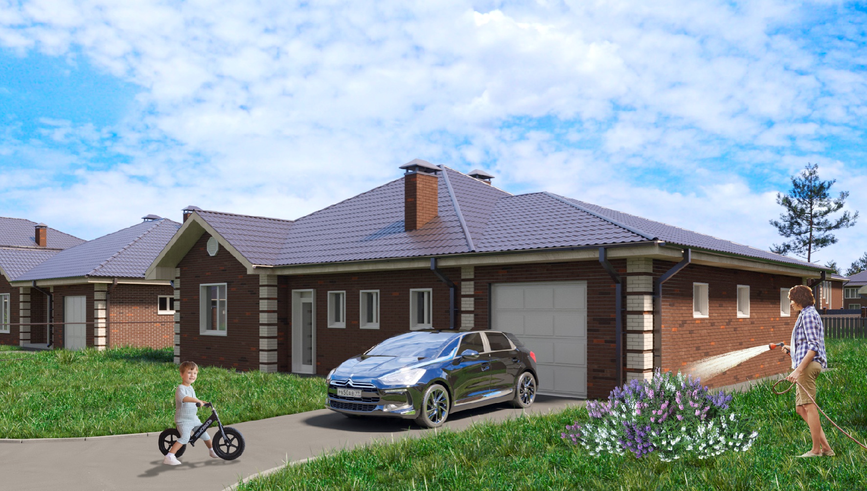 • Индивидуальная парковочная зона для каждого участка на 3 автомобиля