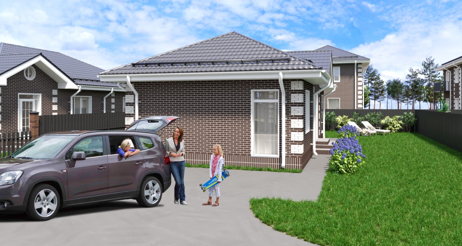 • Индивидуальная парковочная зона для каждого участка на 3 автомобиля